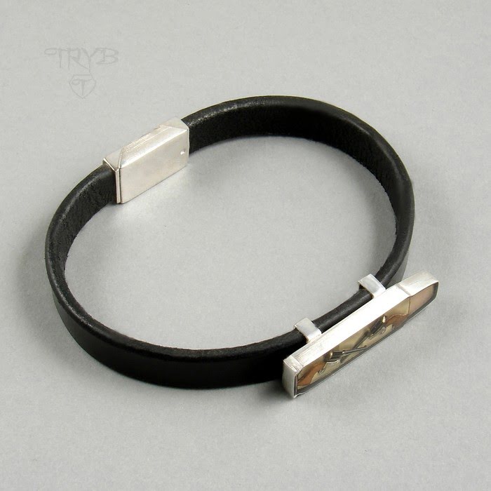 Nic dziwnego, że prędzej czy później ten pistolet musiał zawitać do naszej pracowni. Oto miniaturowy zestaw pojedynkowy odwzorowany z zegarkowych części i forniru orzecha europejskiego osadzony w srebrnej oprawie o kształcie i proporcjach naboju do tej krótkiej broni palnej. Ta iście wystrzałowa kompozycja znalazła swe ucieleśnienie w formie bransolety z paskiem wykonanym z naturalnej skóry licowej zaopatrzonej w estetyczne zapięcie magnetyczne.