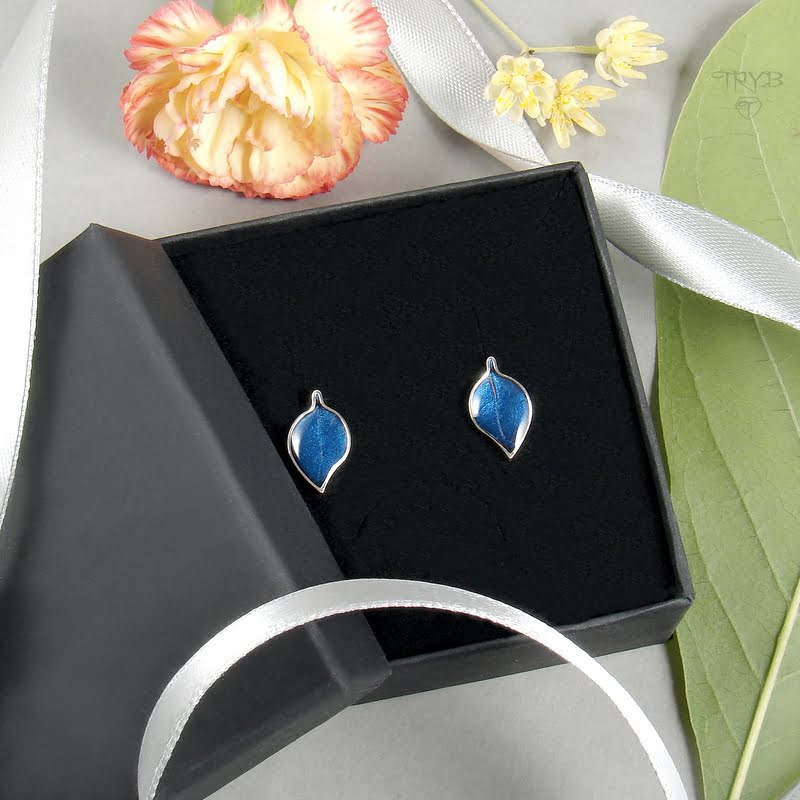 Szlachetny metal, małe rozmiary oraz staranne wykonanie kolczyków w naszym atelier sprawiają, że prezentują się jednocześnie uroczo i elegancko. Z kolei granatowy kolor czyni je nietuzinkowymi. Ta para listków na sztyftach może stać się znakomitym prezentem dla miłośniczki roślin wszelakich, zapalonej ogrodniczki lub wielbicielki literatury i filmów fantasy, gdzie taka barwa liści nikogo nie zdziwi 😉