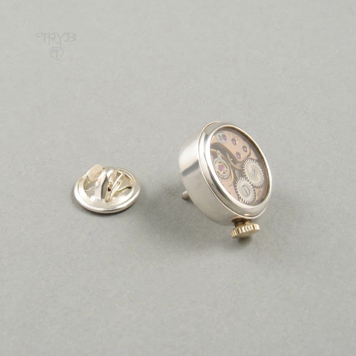Mechaniczny pin do marynarki z działającym mechanizmem zegarka szwajcarskiego