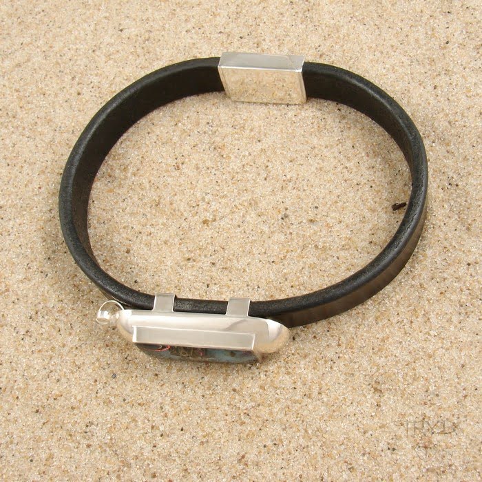 Pasek skórzany jest zrobiony z najlepszej gatunkowo skóry bydlęcej garbowanej wyłącznie roślinnie i barwionej w całej swojej masie. W Polsce taki surowiec jest w zasadzie niestosowany z uwagi na to, iż jest kosztowny, dlatego my skórę do naszych bransolet sprowadziliśmy aż z Włoch. Dlaczego? Ponieważ cenimy sobie trwałość a skóra garbowana roślinnie cechuje się najlepszymi właściwościami fizycznymi: jest elastyczna, dzięki czemu służy mnóstwo lat i szlachetnie się starzeje, nie pęka i nie kruszy się jak tańsze, szybko wyprawiane chromem paski. O ile oczywiście jest właściwie dbana.