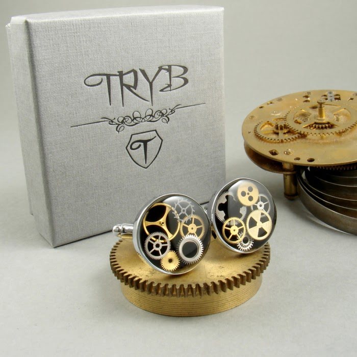 Czarne spinki do mankietów z trybami