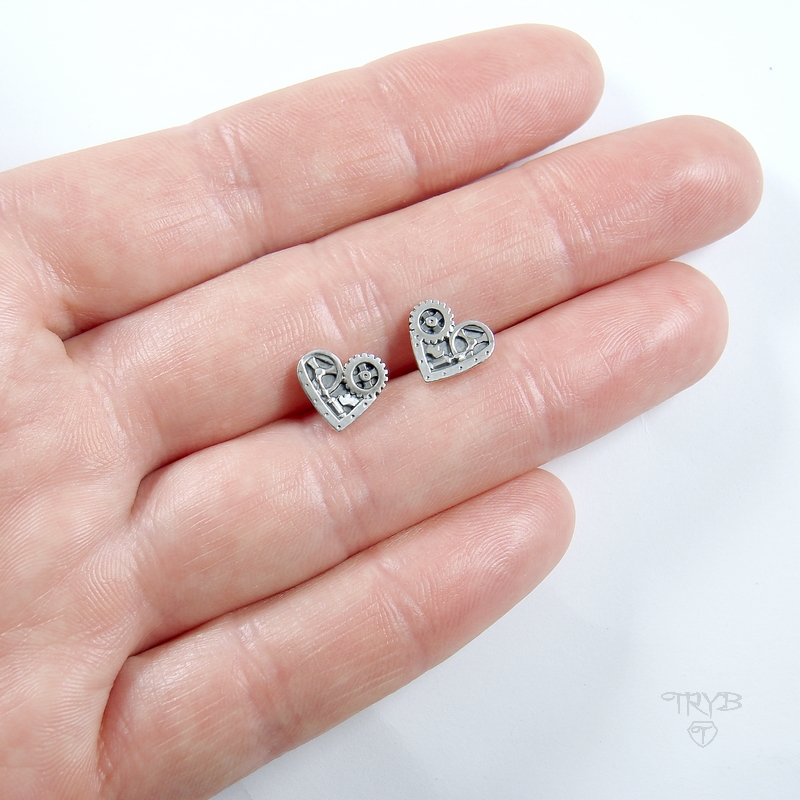 Steampunkowe kolczyki serca ze srebra 925