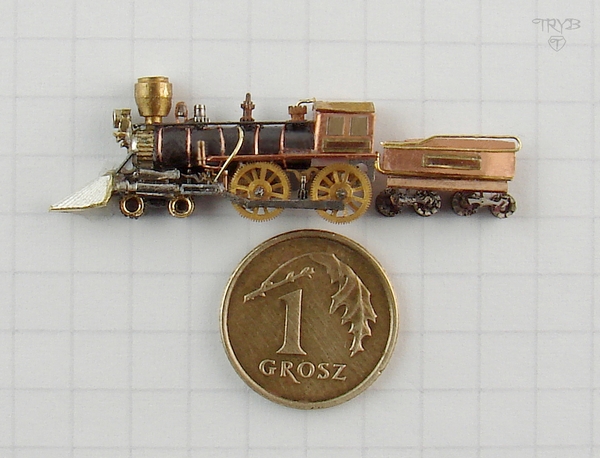 Średnica zewnętrzna tego unikatowego wisiora to ok. 45mm, długość całkowita ok. 9,7 cm. Sam parowóz z tenderem mają tylko 40mm długości. Praca trafiła w ręce znanego polskiego pisarza literatury fantasy: